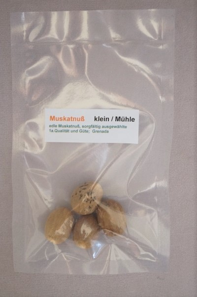 In Gewürzmischungen: Sie können ganze Muskatnüsse auch zu hausgemachten Gewürzmischungen hinzufügen. Mahlen Sie die Muskatnüsse zu Pulver und mischen Sie sie mit anderen Gewürzen wie Zimt, Nelken, Piment und Ingwer für eine hausgemachte Gewürzmischung, die sich gut für Backwaren, Desserts und herzhafte Gerichte eignet.