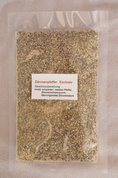 Zutaten:Schwarzer-,Weißer Pfeffer, Zitronenschalenpulver, Säurungsmittel Zitronensäure.