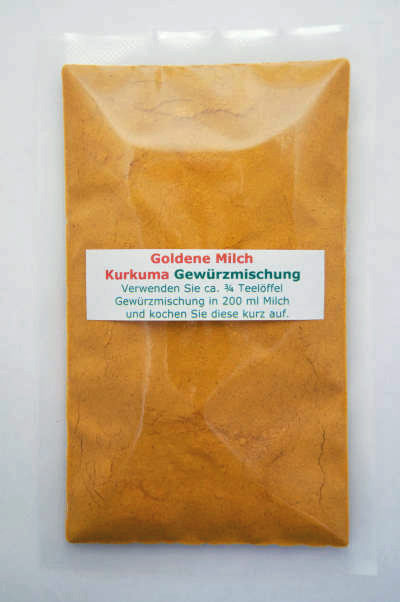 Nutzen Sie ca 3/4 Teelöffel Gewürzmischung mit 200 ml Milch und kochen Sie diese kurz auf. Die Wahl der Milch können Sie nach Belieben wählen. Zum Beispiel Kuhmilch, Reismilch oder Hafermilch. Gelegentlich umrühren. Sobald die Milch anfängt zu kochen und sich Schaum bildet, ist die Goldene Milch fertig.