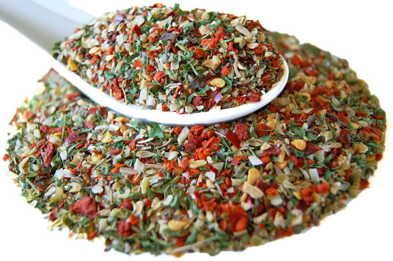 Zutaten: Chili, Zwiebel, Basilikum, Oregano, Petersilie. ( Ohne Knoblauch ) ( kann Spuren enthalten von SELLERIE und SENF )