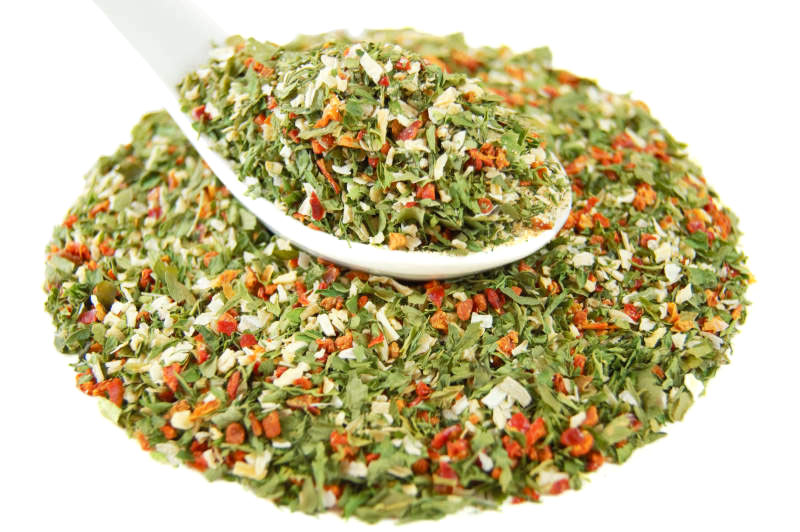 Aromatische und würzige Mischung mit ausgesuchten Kräutern und Gewürzen.