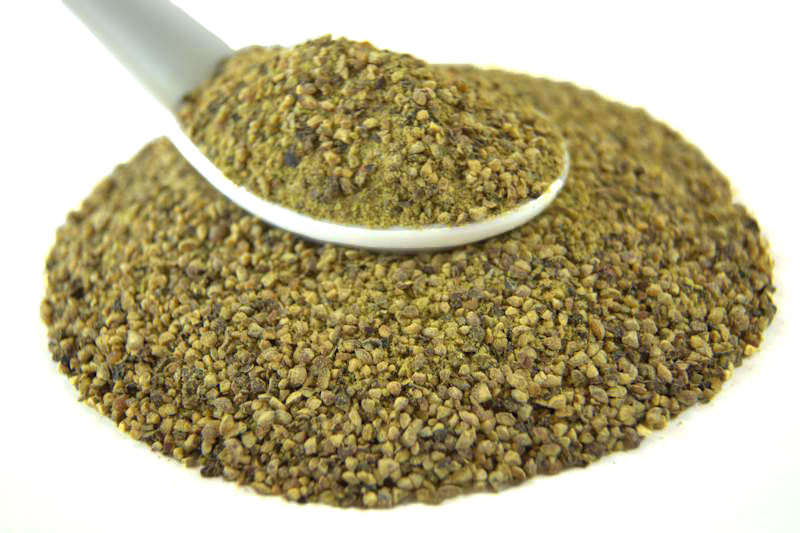 Schwarzer & Weißer Pfeffer geschrotet, Grüner Pfeffer griesig gemahlen
